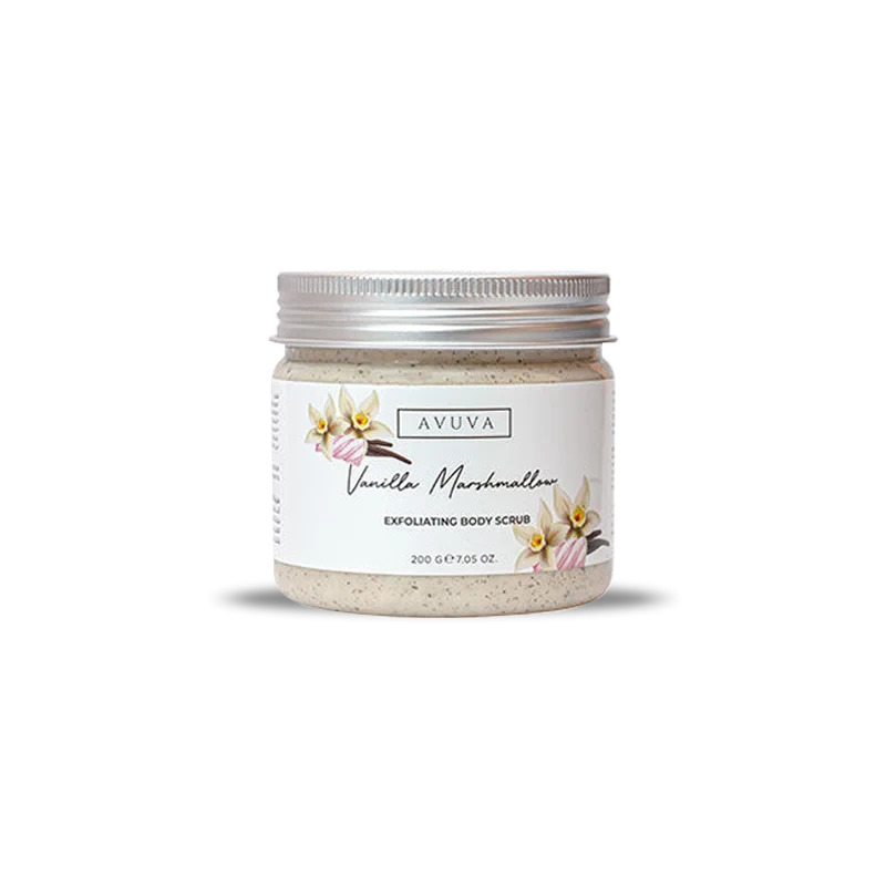 مقشر الجسم بنكهة الفانيليا والمارشميلو من أفوفا لا يزيل خلايا الجلد الميتة والأوساخ والشوائب بتركيبته الكريمية الغنية فحسب، بل يرطب بشرتك بعمق أيضًا. هذا المقشر غني بالبانثينول وفيتامين هـ والبارافين، مما يمنع فقدان الماء من بشرتك ويحافظ على نعومة جسمك. ليس هذا فحسب، بل إنه لا يترك أي بقايا دهنية ويعزز نمو البشرة!