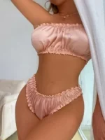 طقم ملابس داخلية باندو مزين بكشكشة.