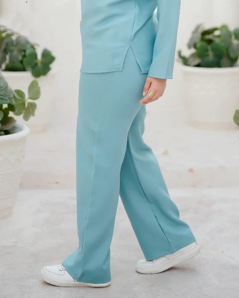 تألقي مع بنطلون الوايد ليج المصنوع من خامة روزالين المستوردة. يتميز بتصميم واسع ومريح، مثالي للإطلالات الكاجوال والفورمال