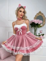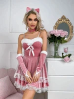 طقم زي تنكري مكوّن من فستان فيلفت بربطة فراشة من الأمام وتطريز دانتيل متباين.