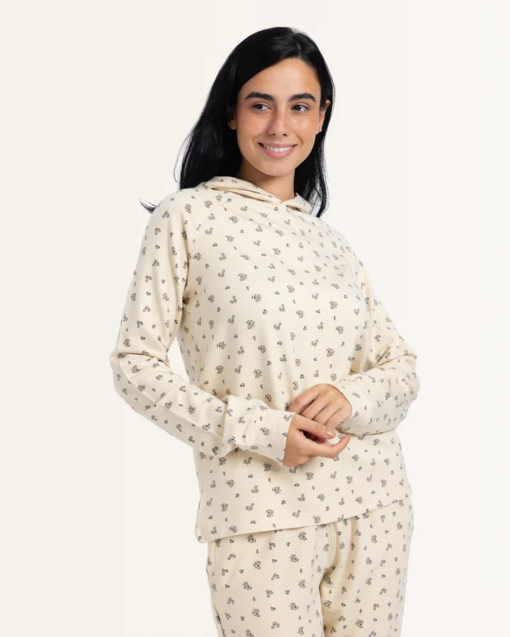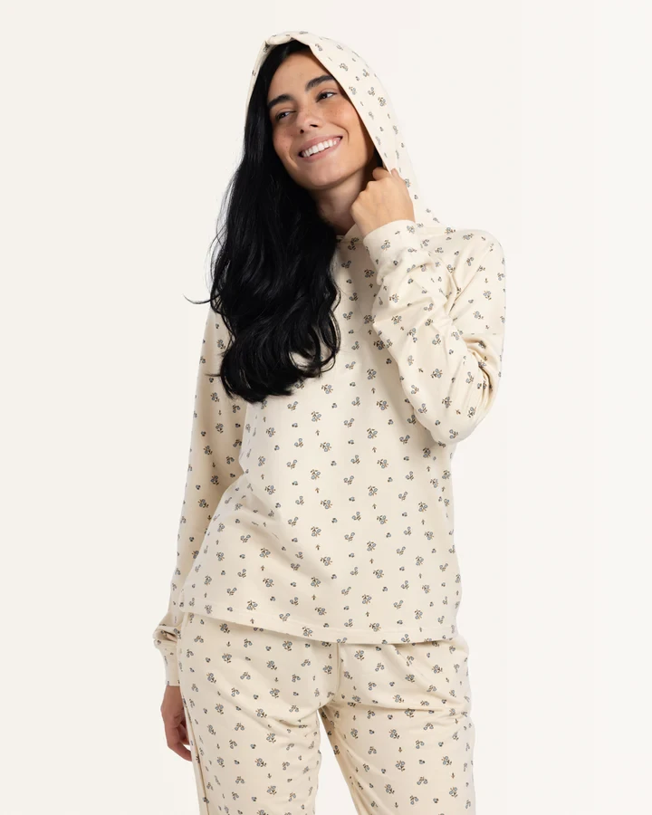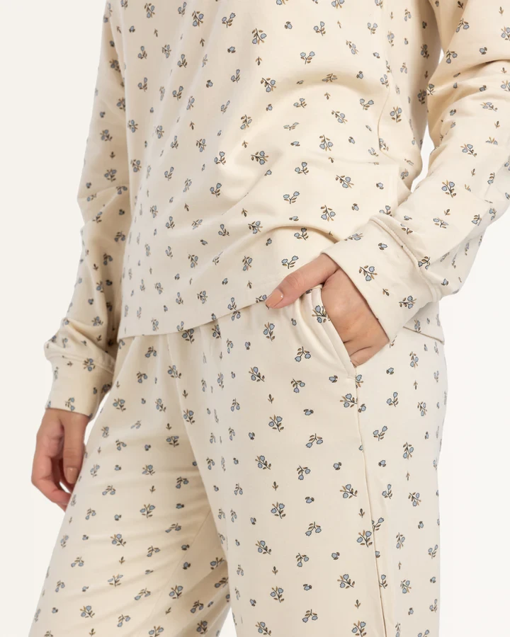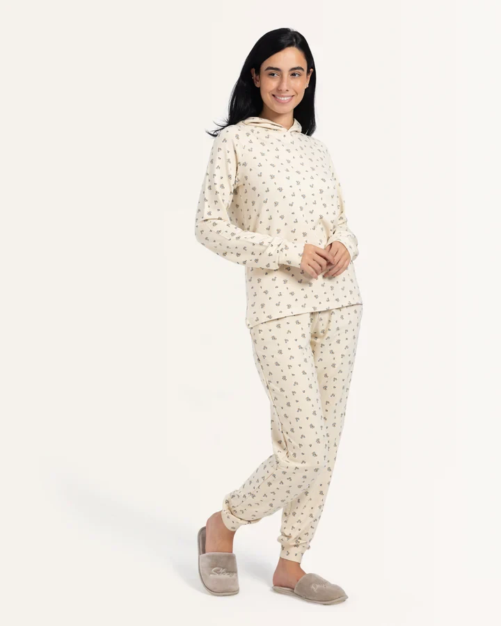 "ابق دافئًا وأنيقًا هذا الشتاء في بيجامات ميلتون الفاخرة المزينة بالورود الشتوية الجميلة. يضيف اللون الكريمي لمسة من الأناقة بينما تحافظك مواد ميلتون الصيفية الناعمة على دافئة ومريحة. متوفرة بأحجام S-3XL ، هذه البيجامات مثالية للتسكع أو ليلة جيدة في النوم.