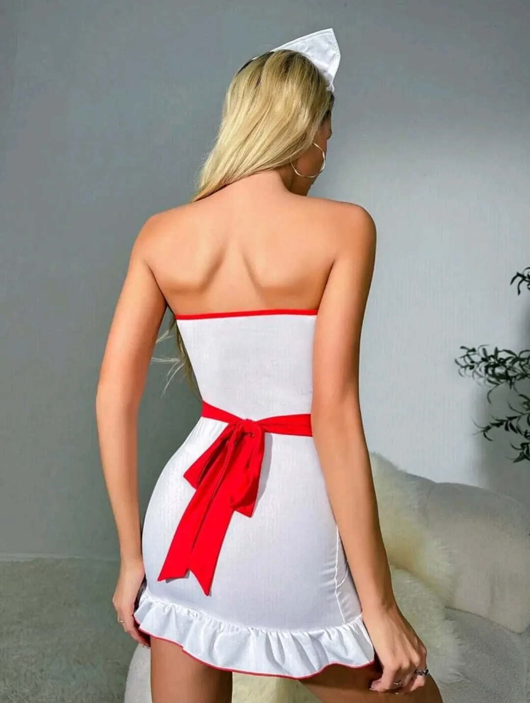 Contrast color nurse uniform with ruffle stripes