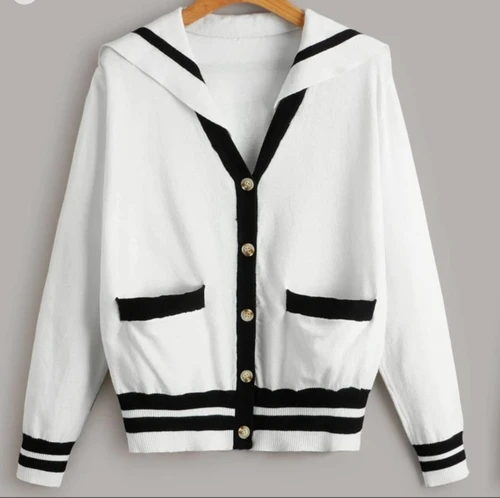 contrast trim sailor collar pocket front cardigan