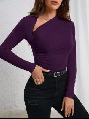 تي شيرت كوسمينا بلون موحد وياقة غير متماثلة