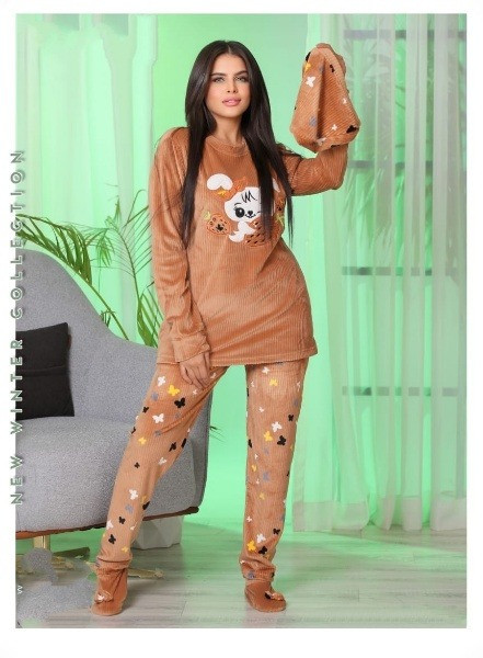 دفايه شتوي حريمي مكون من 4 قطع من الفارو الناعم من تشيرت بنطلون طاقيه لكلوك