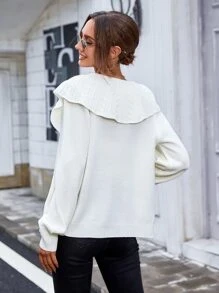 Doll neck layered knit cardigan