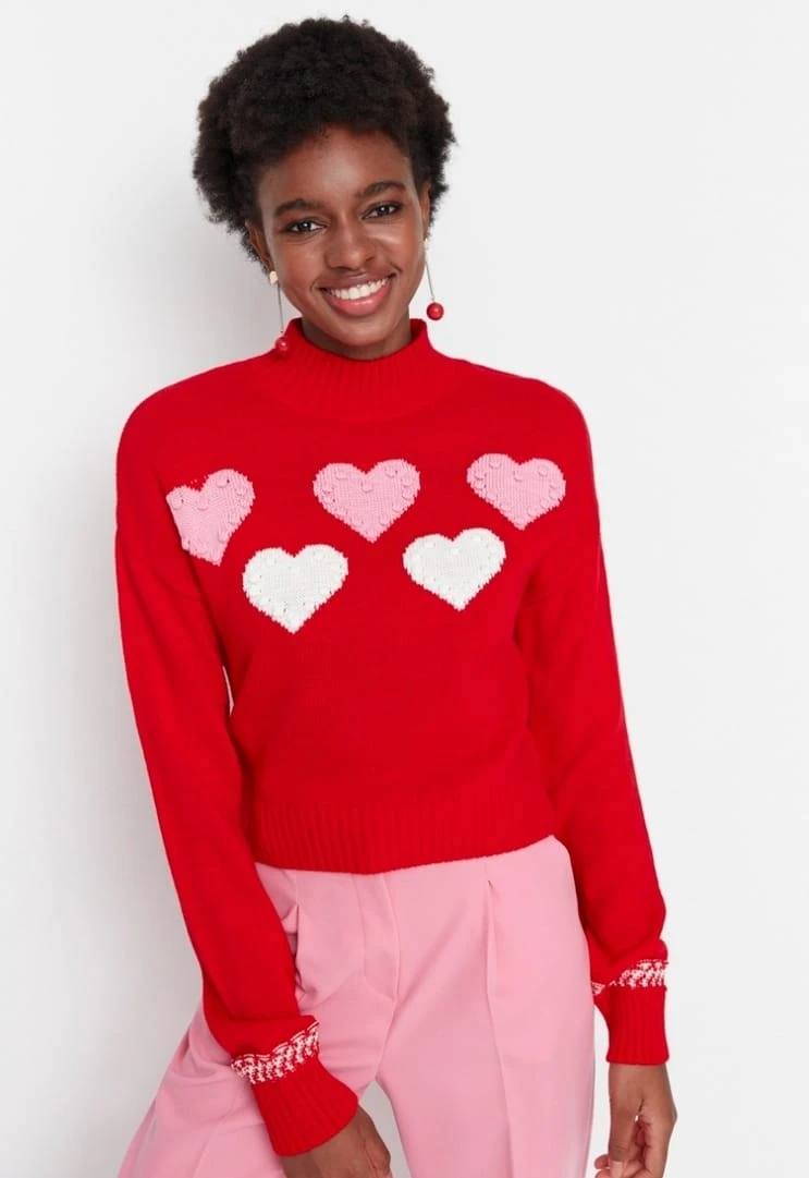 Heart-print turtleneck sweater