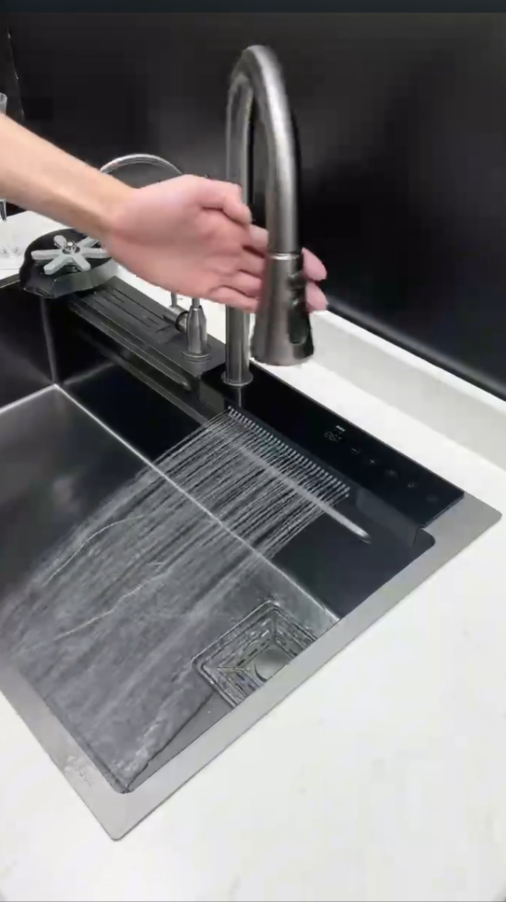 حوض استانلس 304 سمك 3 مللي معالج بتقنية النانو تكنولوجي مقاوم للتجريح والخدوش 2 مصفاة خضروات وفاكهة قطاعة خضروات وفاكهة دسبنسر صابون شطافة كوبيات سمارت خلاط شيف سمارت سحاب شاشة تاتش لتشغيل الخلاط وباقى الاكسسوارات مع ضمان 5 سنين