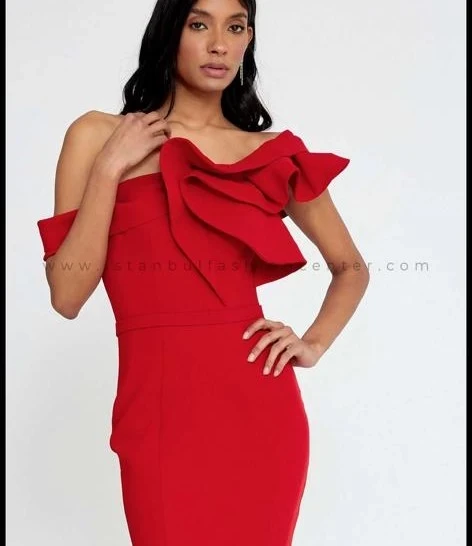 Long red dress for evening and wedding parties, off the shoulder, long crepe sha