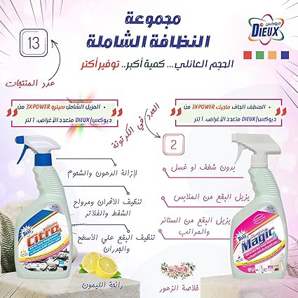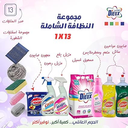 • تنتكون مجموعة التنظيف الشاملة الأقتصادية من: مسحوق غسيل ديوكس|DIEUX للغسالات العادية والهاف اتوماتيك 1 كجم