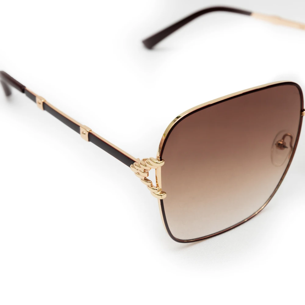 • إطار متين مع أذرع معدنية ملفوفة بالمطاط وهيكل مفصلات: تتميز هذه النظارات الشمسية بإطار  عالي الجودة لمتانة خفيفة الوزن، جنبًا إلى جنب مع أذرع معدنية أنيقة ملفوفة بالمطاط. يسمح الهيكل المفصلي المرن للأذرع بالتكيف للحصول على ملاءمة آمنة، مما يضمن الراحة ويمنع الضغط على الأذنين أثناء الارتداء الطويل. يوفر الطلاء المطاطي الموجود على الأذرع قبضة غير قابلة للانزلاق، مما يحافظ على النظارات الشمسية في مكانها طوال أنشطتك.