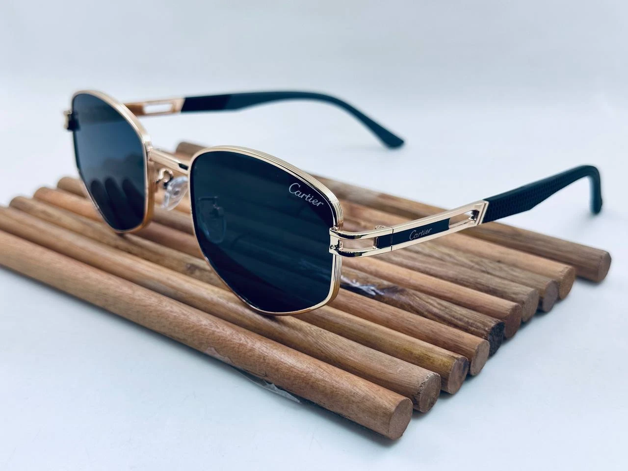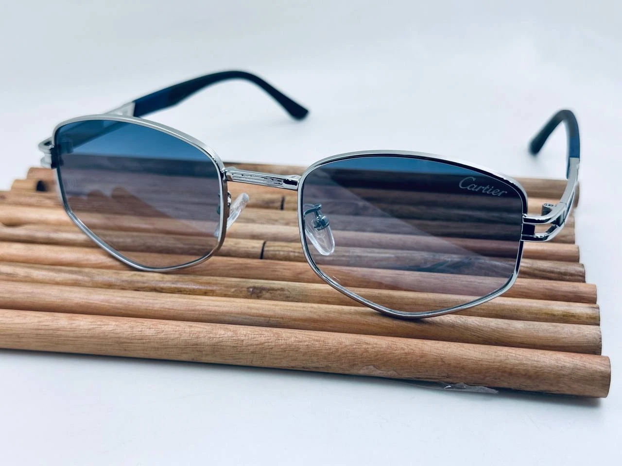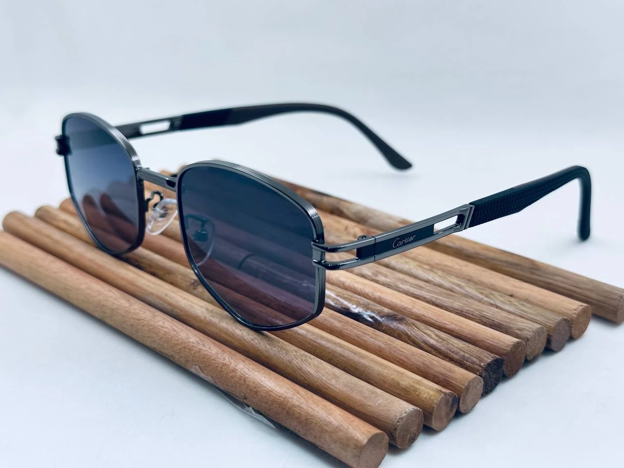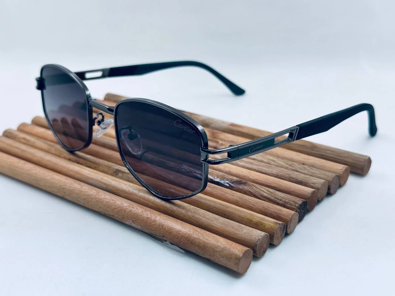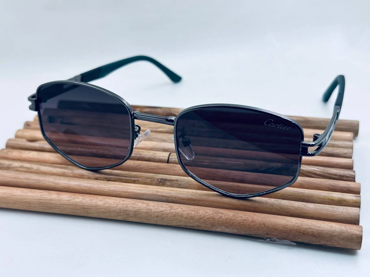 نظارة شمس Cartier  بتصميم كلاسيكي راقٍ، عدسات مستقطبة UV400 للحماية من الشمس، فريم معدني أنيق وخفيف الوزن، مناسبة للإطلالات اليومية والرسمية.