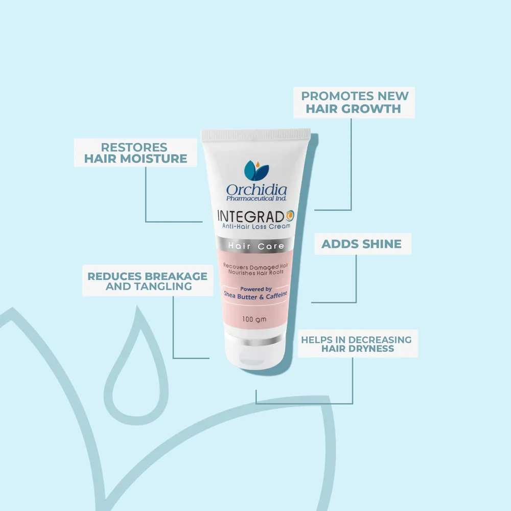 The Integrado Anti-hair Loss Cream by Orchidia Pharmaceutical, is an innovative solution that effectively reduces the rate of hair loss. It replenishes the moisture in the hair, preventing dryness. It minimizes breakage and tangling, resulting in stronger and healthier hair. Additionally, it enhances shine and stimulates the growth of new hair. This cream is suitable for all hair types and aids in reducing dryness.
