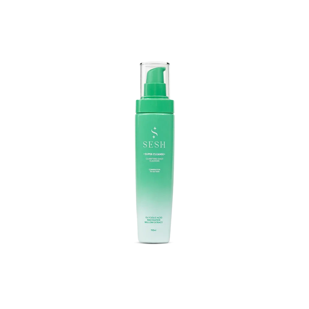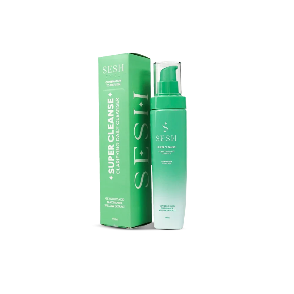 This Super Cleanse Clarifying Daily Cleanser from Sesh is a gentle yet effective exfoliating and cleansing solution. Its unique gel texture transforms into a light foam, thoroughly removing dirt, bacteria, excess oils, and pore-clogging debris. This cleanser exfoliates all layers of the skin, sheds dead skin cells, dissolves excess sebum, and minimizes the appearance of enlarged pores. It helps prevent the build-up of blackheads and whiteheads, particularly on acne-prone skin, for a clear and smooth complexion.