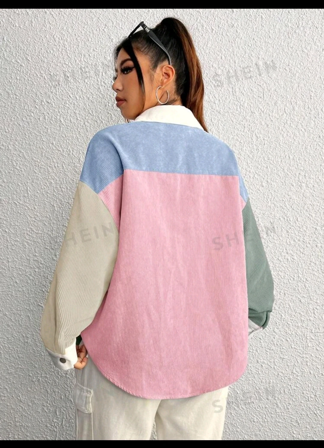 SHEIN EZwear Plus Size Women Plus Size Letter Patched Colorblock Drop Shoulder P