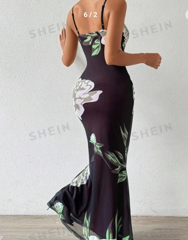 SHEIN Privé Women's Flower Print Pleated Cami Dress