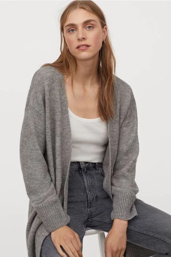 Shiny cardigan with gray side pockets