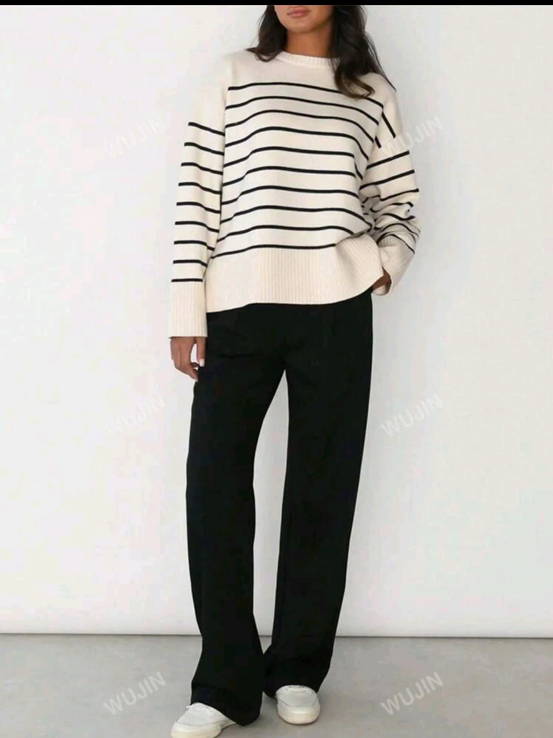 بلوفر شتوي أنيق بتصميم مخطط من ألوان متناسقة، بياقة دائرية (Crew Neck)، مريح وعملي لأجواء الكاجوال. يأتي من مجموعة SHEIN Relaxiva ويتميز بياقة عالية (Turtleneck) مع أزرار جانبية لمسة عصرية. مصنوع من خامة تريكو مضلعة تمنحك دفء وأناقة مثالية لفصل الشتاء.