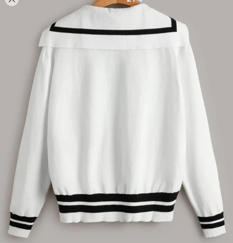 contrast trim sailor collar pocket front cardigan