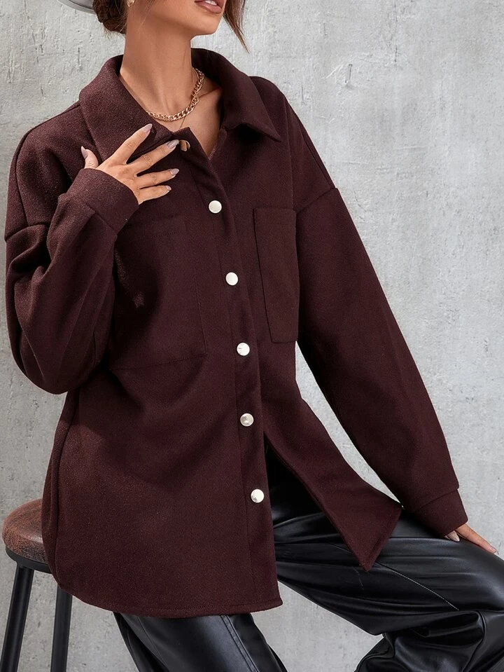 معطف واسع بكتف منخفض وجيوب رقعة