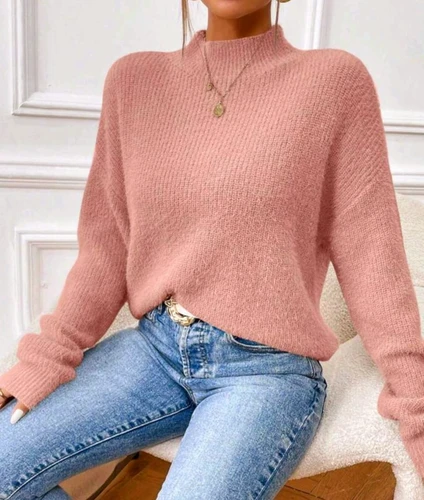 بلوفر صوف برقبة عالية وتصميم الأكتاف المنخفضة، مثالي للدفء والأناقة في الأجواء الباردة، بتفصيل عصري يمنحك إطلالة مريحة وراقية.