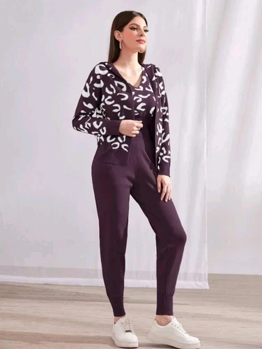 كارديجان بطبعة ليوبارد، مع فيست ثقيل وبنطلون من الصوف، لإطلالة شتوية أنيقة تجمع بين الدفء والجرأة في التصميم. مثالي للأيام الباردة ولمظهر عصري لافت.