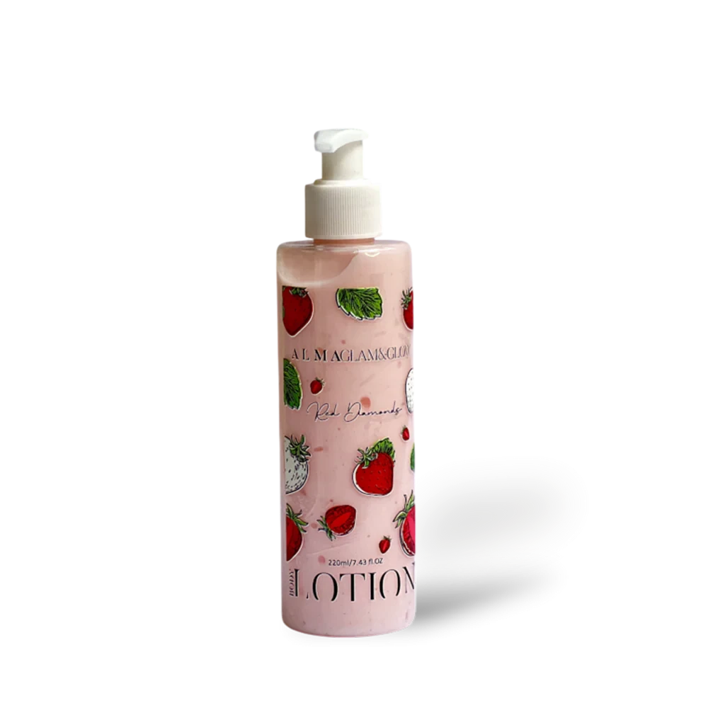 Reveal deeply nourished skin with Red Diamond Lotion, enriched with shea butter, jojoba oil, and coconut oil for intense hydration. Sweet almond oil restores softness and smoothness, leaving skin silky and radiant. This daily lotion pampers skin while wrapping it in the fresh, irresistible scent of sun-ripened strawberries.