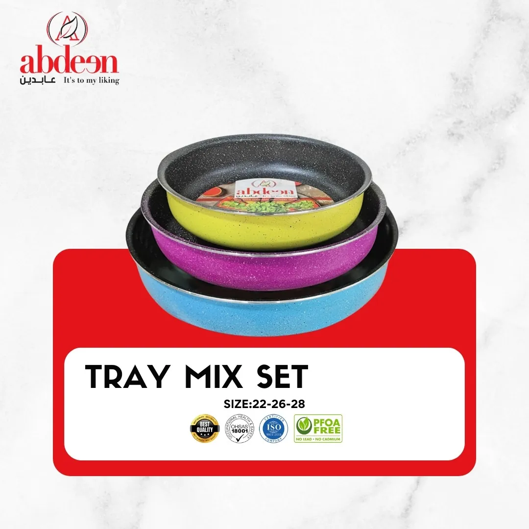 1. طقم صواني 3 قطع مقاسات والوان  مختلفة  جرانيت من عابدين صحية غير قابلة لالتصاق توزيع حراري ممتاز