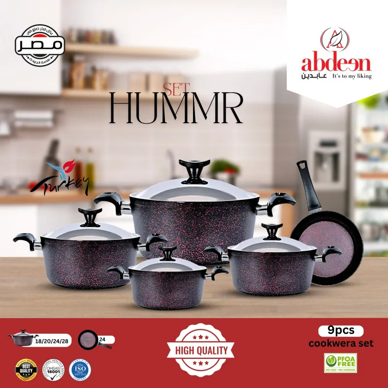 1. طقم هامر ماركة عابدين ماتريال تركي مستوردة  تقفيل وصناعة مصري جرانيت غير قابل لالتصاق توزيع مثالي للحرارة ضمان سنتين ضد عيوب الصناعة