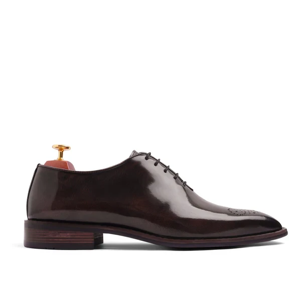 Vatrina Genuine Leather Plain Toe Oxford - Dark Hazel