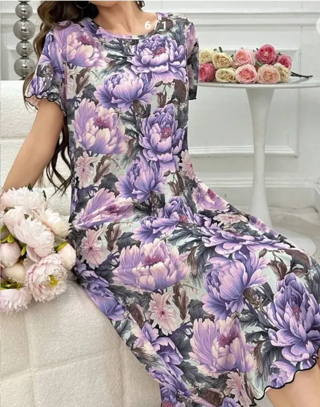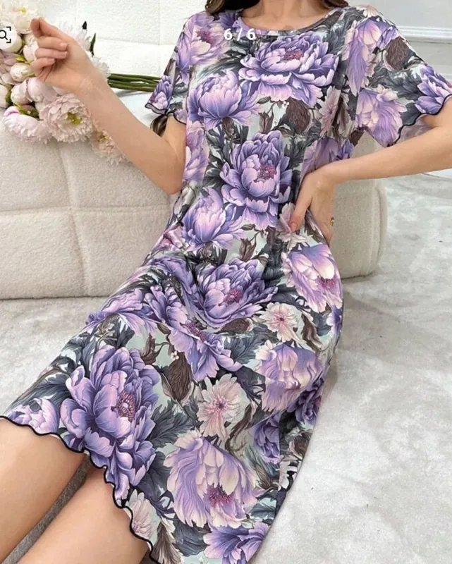 Women Floral Print Long Pajama Night Dress