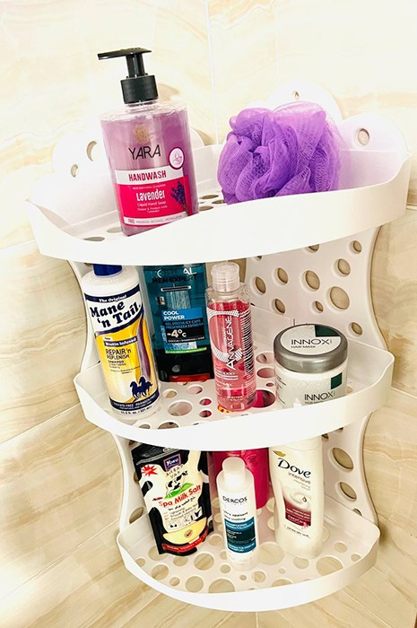 ركنة لتنظيم أدوات النظافة المستخدمة في الاستحمام تستحمل درجات حرارة بخار الماء المرتفعة فهي لا تصدأ و مزودة بمسامير لتثبيتها في الحائط