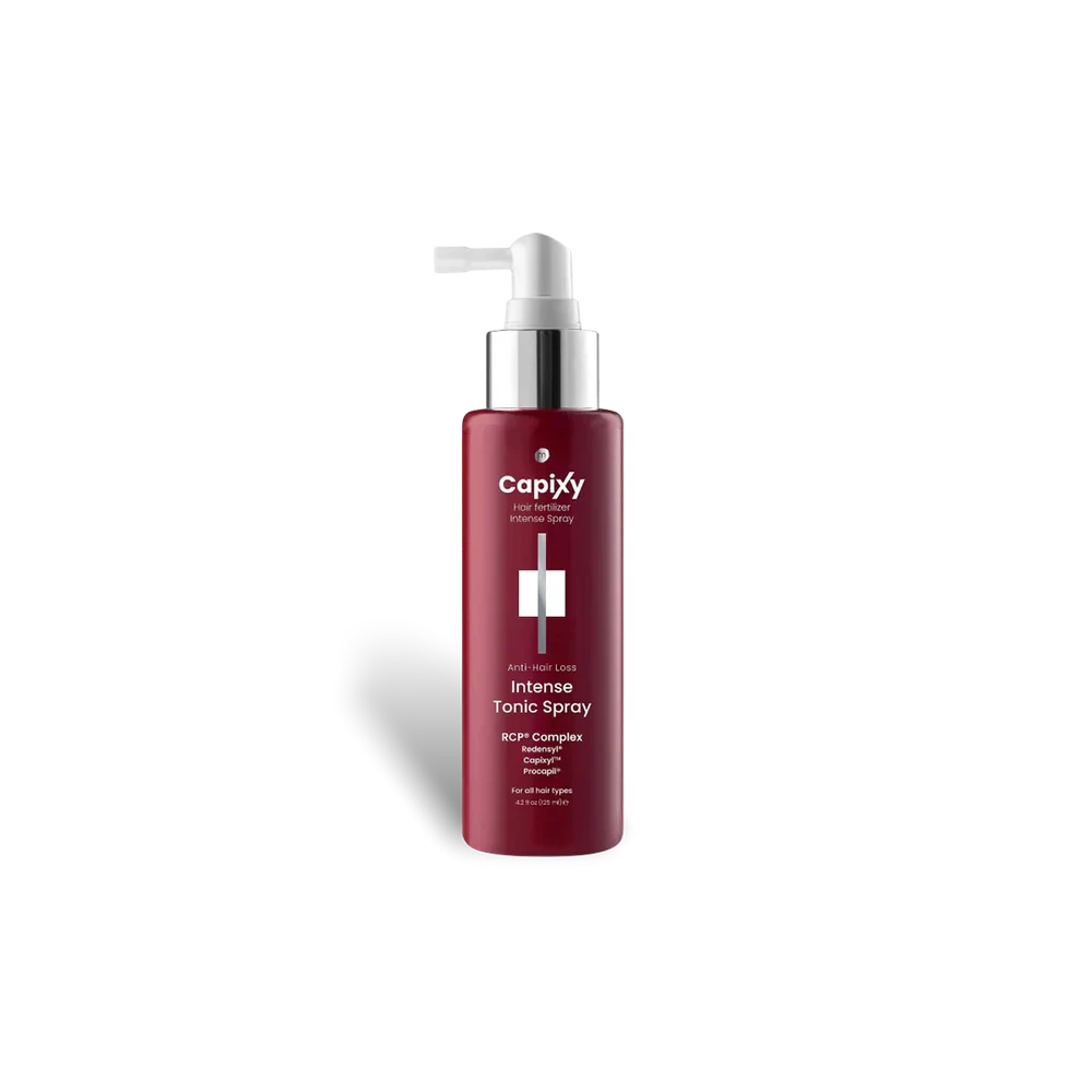 Revive your hair with Capixy's Intense Tonic Spray. Crafted with a powerful botanical blend, it targets the root causes of hair loss at every stage, reviving dormant follicles, boosting circulation, and providing essential nutrients to grow healthy new strands. This revolutionary spray addresses the heart of what's causing your thinning and shedding, delivering long-lasting, natural-looking results.
