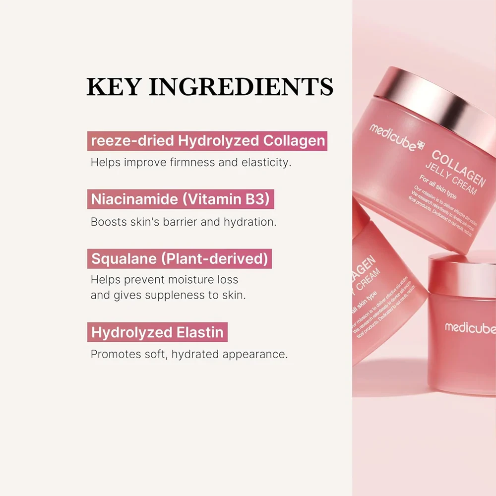 كريم الكولاجين جيلي، كريم ناعم، ومُشرق لبشرتكِ مع تركيبة شفافة خالية من السيليكون، تُعزز مرونتها وتُوحد لونها. مُختبر من قِبل أطباء الجلدية، ولا يُسبب تهيجًا يُذكر، يُضفي على بشرتكِ إشراقة الزجاج الكوري المميزة مع كل استخدام. بنتائج مُثبتة خلال ٢٤ ساعة فقط، يُشد البشرة المُترهلة ويتركها مُشرقة ونضرة بشكل واضح.