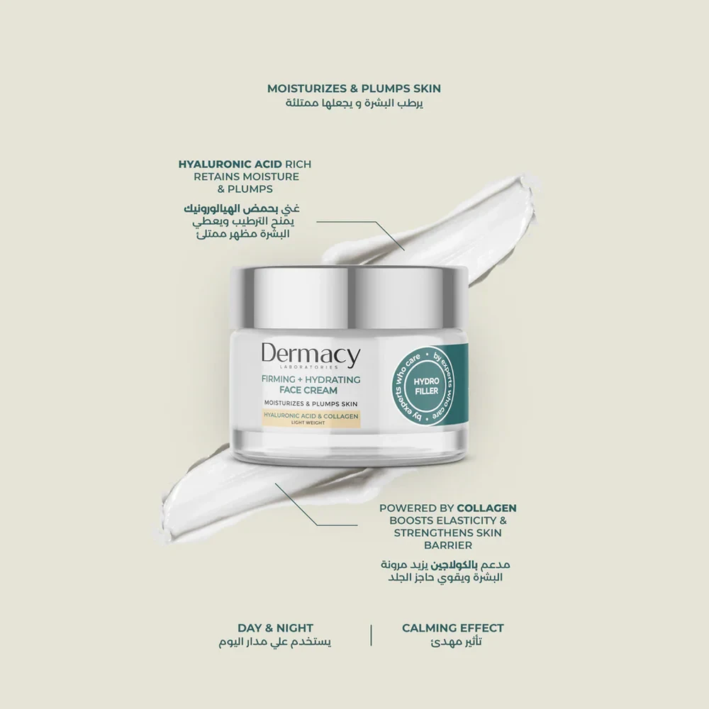 Experience ultimate hydration and strength with this Firming & Hydrating Face Cream from Dermacy Lab. Designed to moisturize and reinforce your skin barrier, its lightweight formula deeply hydrates without greasiness. It firms the skin and imparts a plump, healthy glow, ensuring a refreshed and revitalized complexion.