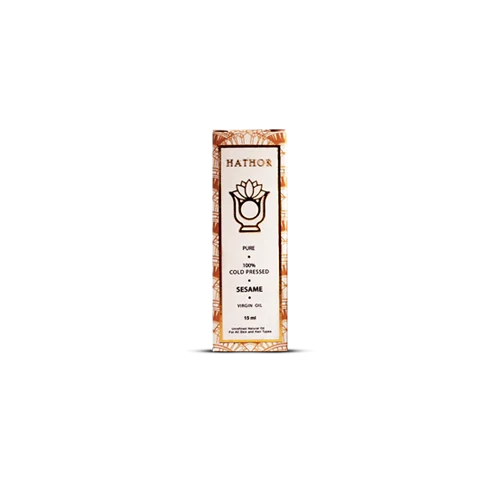 Utilize the versatile Sesame Oil from Hathor to aid beauty and skin-related areas. Its powerful anti-inflammatory and anti-bacterial properties detoxify the skin and clear your complexion. The molecules within sesame oil attract oil-soluble toxins that can be washed away. These properties make it perfect to be used for skin conditions like eczema. Also helpful in reducing existing acne and pimples and preventing breakouts and blackheads, this oil will leave glowing and healthy skin. Applied to the scalp, this oil will help boost blood circulation and promote healthy and strong growth