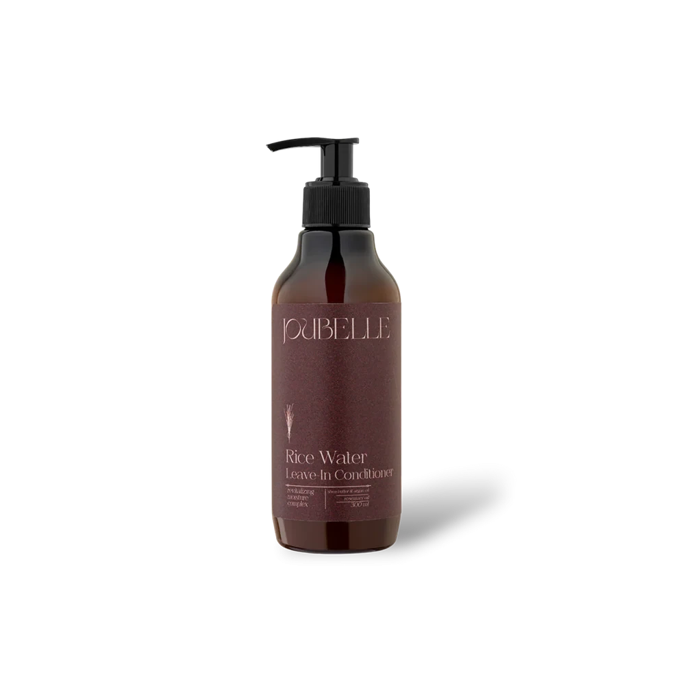 Experience the ultimate hydration with JOUBELLE's Rice Water Leave-In Conditioner. Infused with rosemary oil, argan oil, shea butter, and rice water, this sulfate- and silicone-free treatment nourishes, repairs, and strengthens your hair. It promotes healthy growth, adds shine, and leaves your hair soft, manageable, and protected.