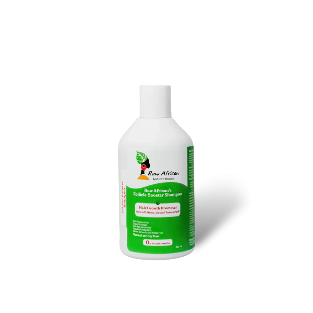 Unleash your hair's full potential with the Follicle Booster Shampoo from Raw African. Formulated with a potent blend of proven haircare ingredients, it delivers intense hydration and stimulation to transform dull, brittle hair into a lustrous, healthy mane. This nourishing shampoo awakens dormant follicles and revives lifeless locks. It supports hair strength with biotin and soothes the scalp while enhancing shine with rosemary extract.