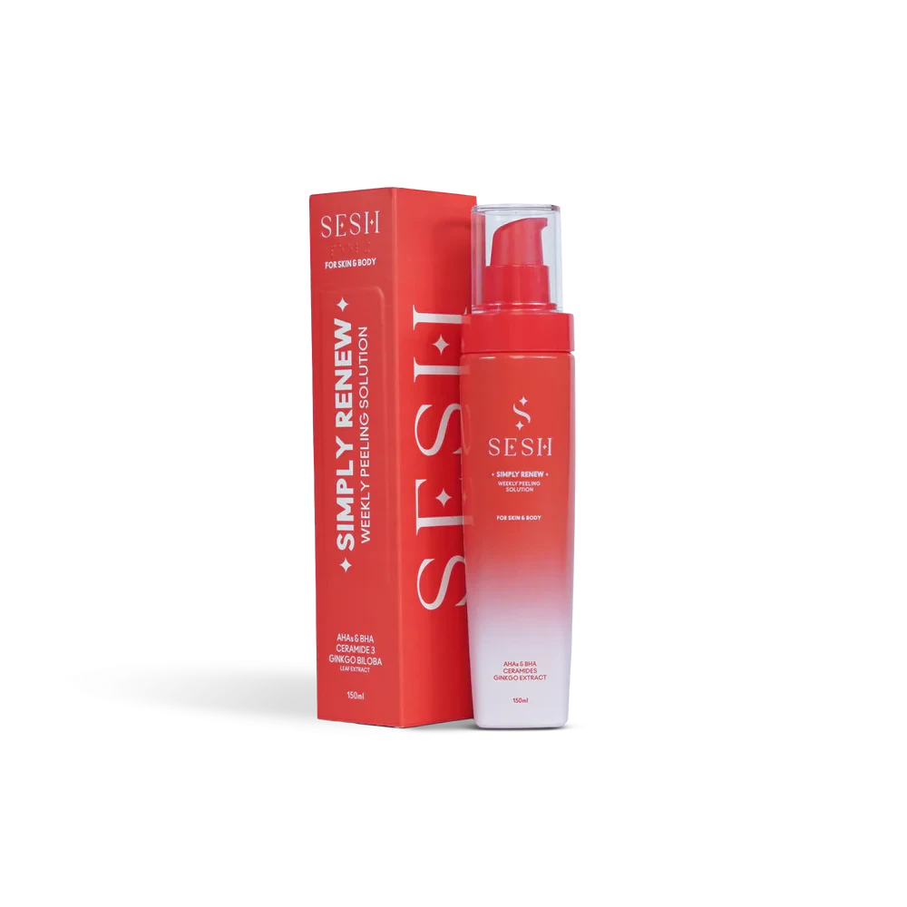 محلول التقشير الأسبوعي Simply Renew من Sesh هو علاج تقشير فعال لوجهك وجسمك. يجمع بين أحماض ألفا هيدروكسي (AHAs) وأحماض بيتا هيدروكسي (BHAs) لتحسين ملمس البشرة، وتوحيد لونها، وتعزيز إنتاج الكولاجين، وتفتيحها. حمض الساليسيليك يُنظف المسام ويُنظم إفراز الزيوت، بينما تُزيل أحماض ألفا هيدروكسي (AHAs) خلايا الجلد الميتة بلطف لإطلالة شبابية. السيراميد يُرطب البشرة ويحميها، بينما يُهدئ مُستخلص الجنكة البشرة ويُعزز شفائها. يُعالج هذا المحلول حب الشباب في الجسم، والبقع الخشنة، والشعر الناشئ تحت الجلد، والمناطق الداكنة، ليترك بشرتك مُشرقة ومتجددة.