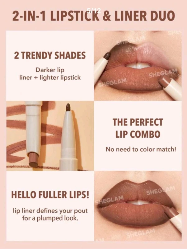 SHEGLAM Glam 101 Lipstick & Liner Duo-Warm Nutmeg 2-In-1 Matte Dual-Ended Lip Liner Lipstick Pencil Highly Pigmented Long Lasting Smooth Easy To Wear Lip Makeup Black Friday Winter Pink Brown Lip Liner