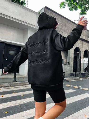 هودي بطبعة حروف وجيب كنغر منخفض الكتف
