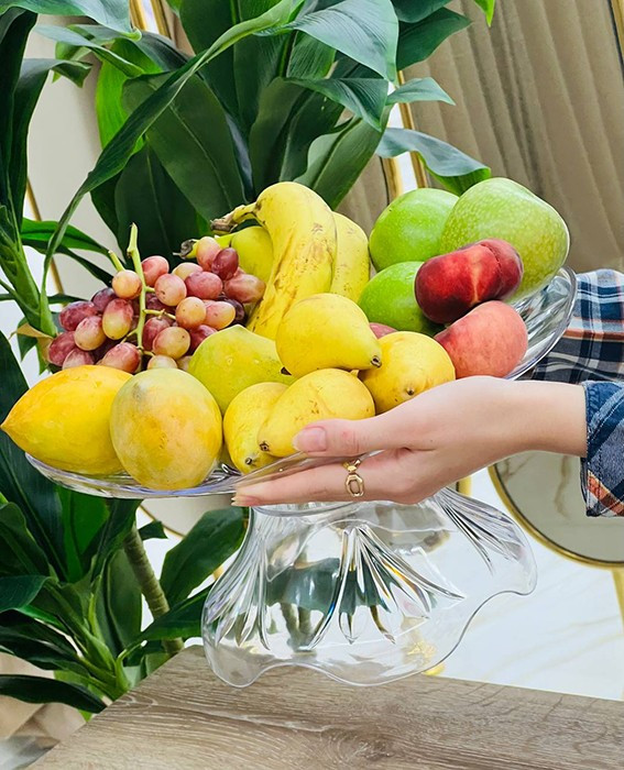 طبق تقديم فاكهة أكريليك بقاعدة كبيرة وحجم كبير ليتسع كمية فاكهة كبيرة و مظهره جميل