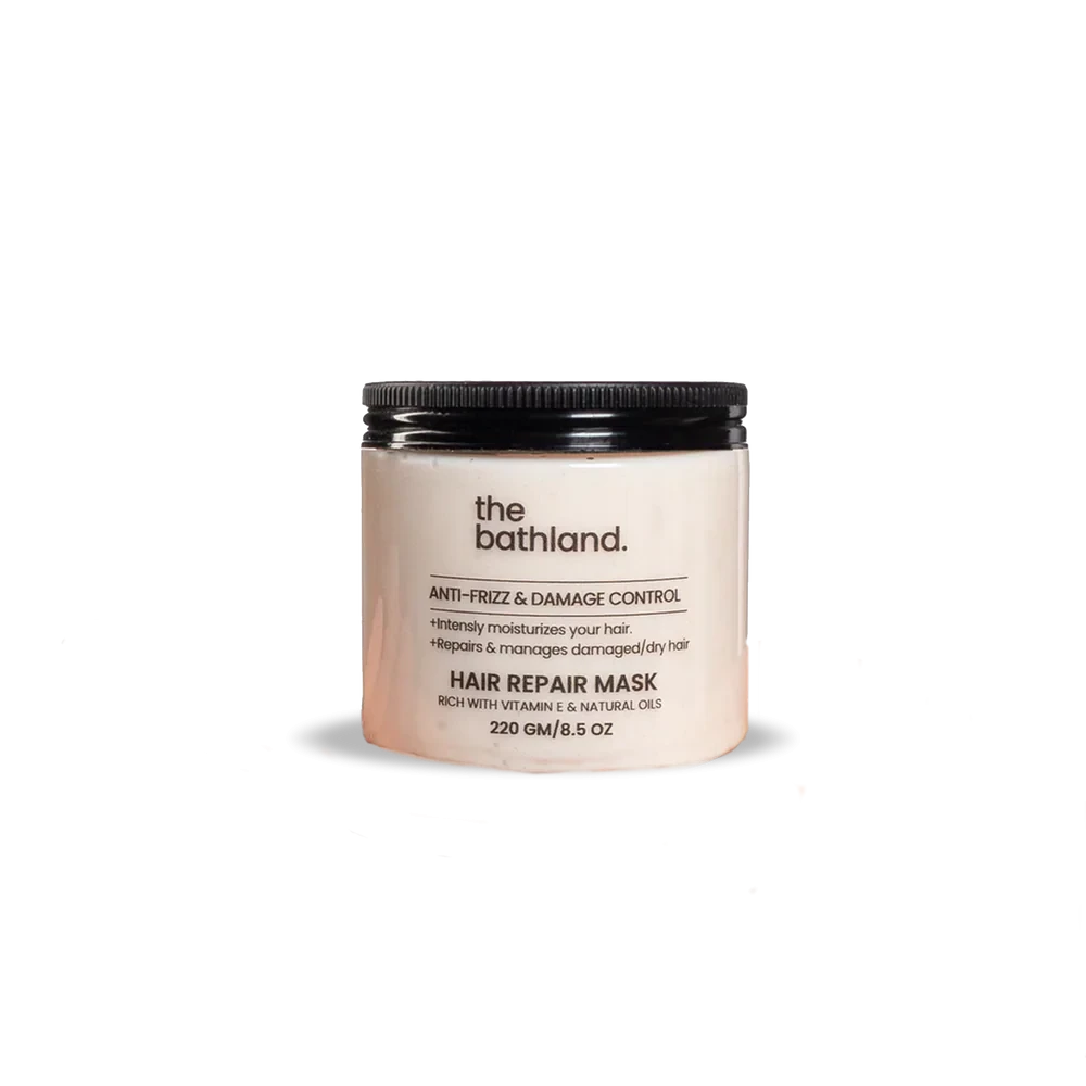 Get your hair back to a healthy state with The Bath Land's Hair Repair Mask. Made with a blend of rich and natural oils, this mask will help restore and rebuild damaged hair. Formulated with castor oil and vitamin E to help improve scalp health, and vitamin B5 to help add shine this mask will bring your locks back to life.